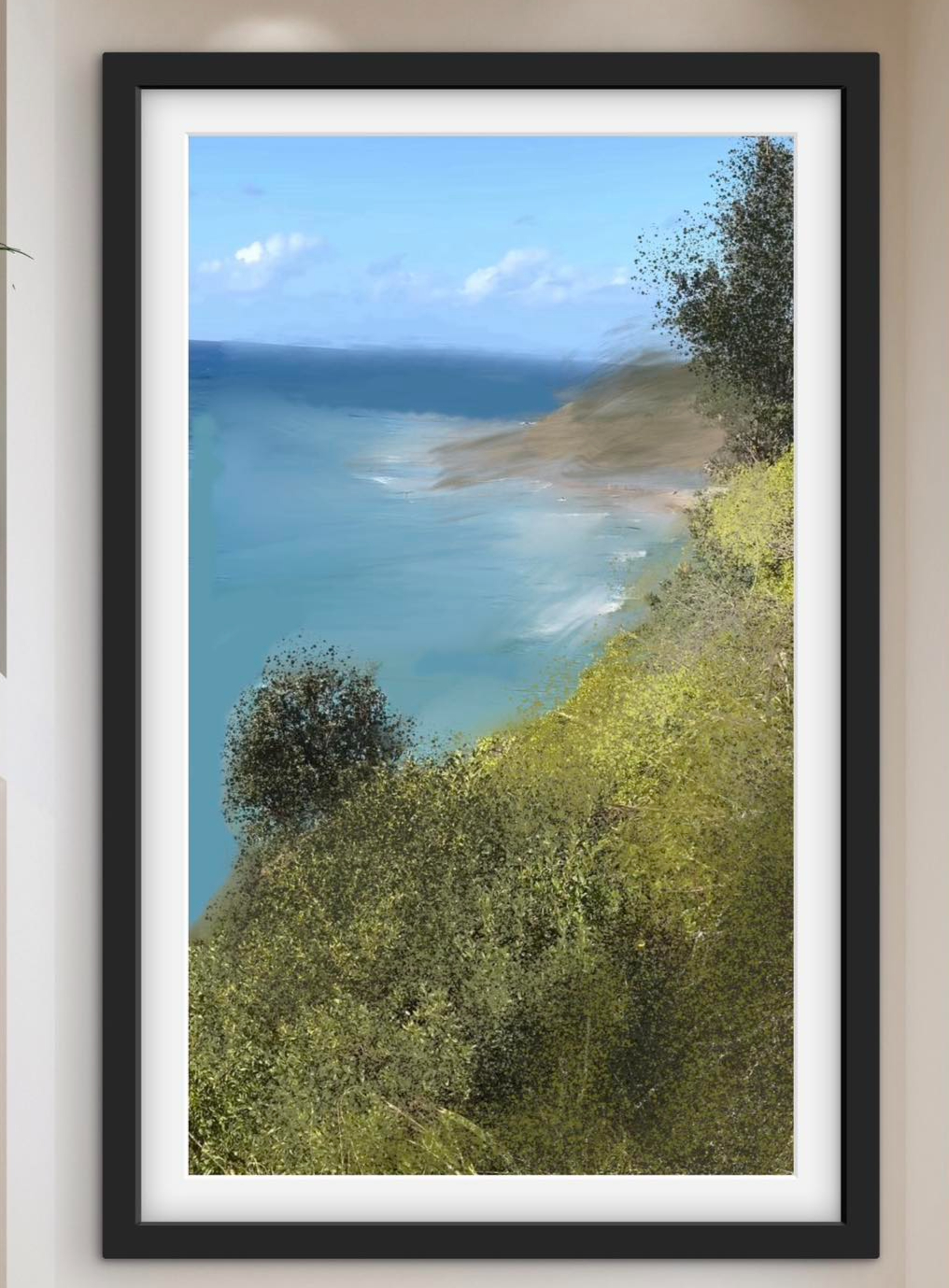 - Southern California Pacific coast chaparral bluff — oil painting print by Noemi Rochelle Fleming VivRo