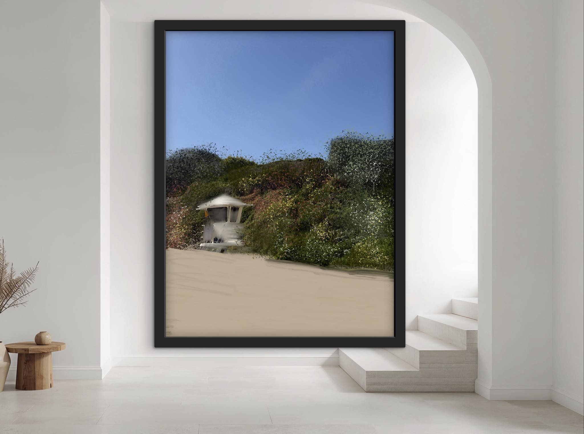 - Vivro art by Noemi F print: large framed laguna beach scene white lifeguard bloom