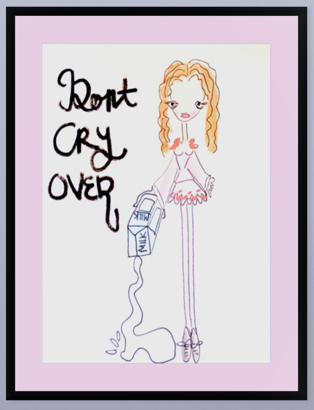 - Vivro art by Noemi F print: girl with IV, text 'Don't CRY OVER spill milk'