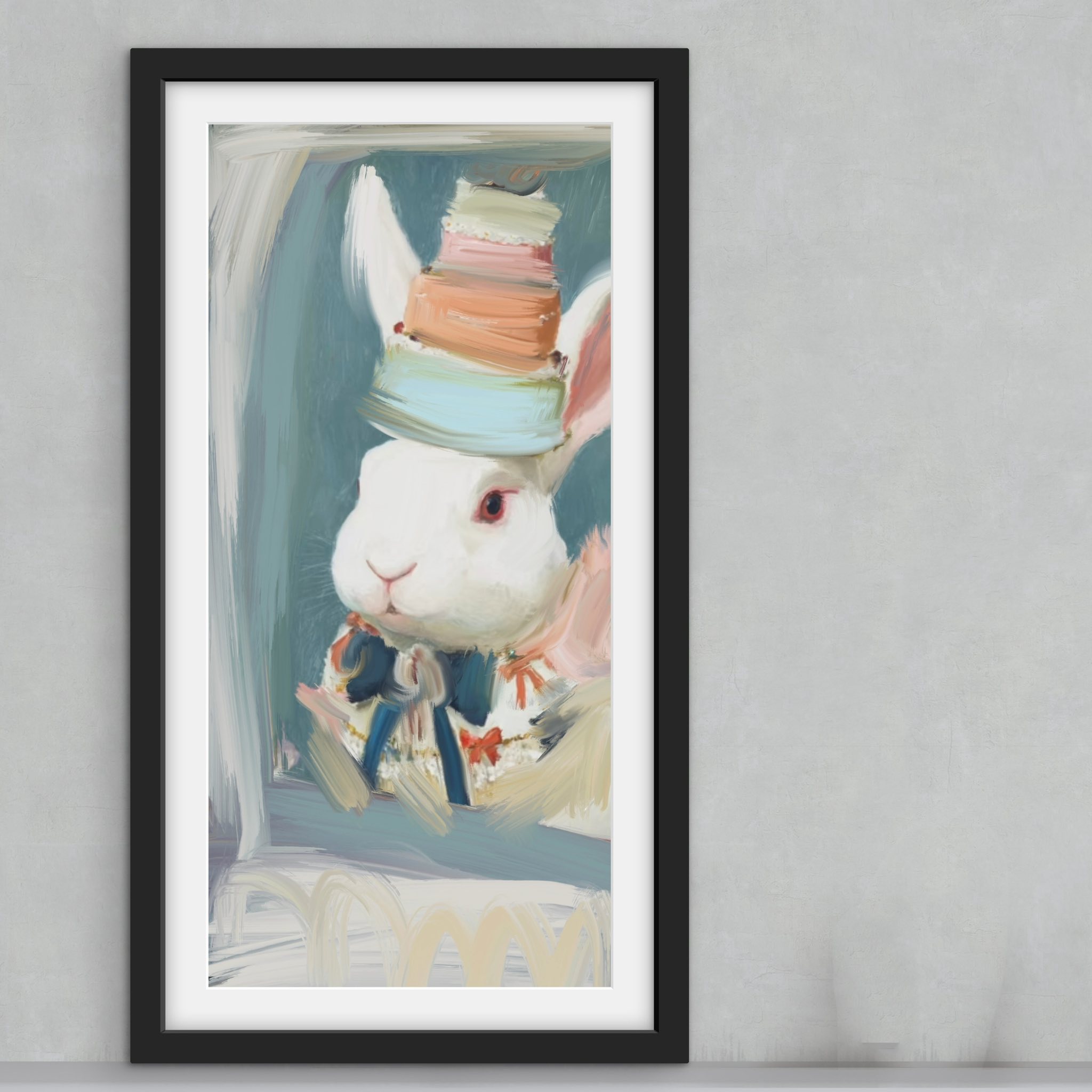 - Circus rabbit portrait interior — oil painting print by Noemi Fleming VivRo