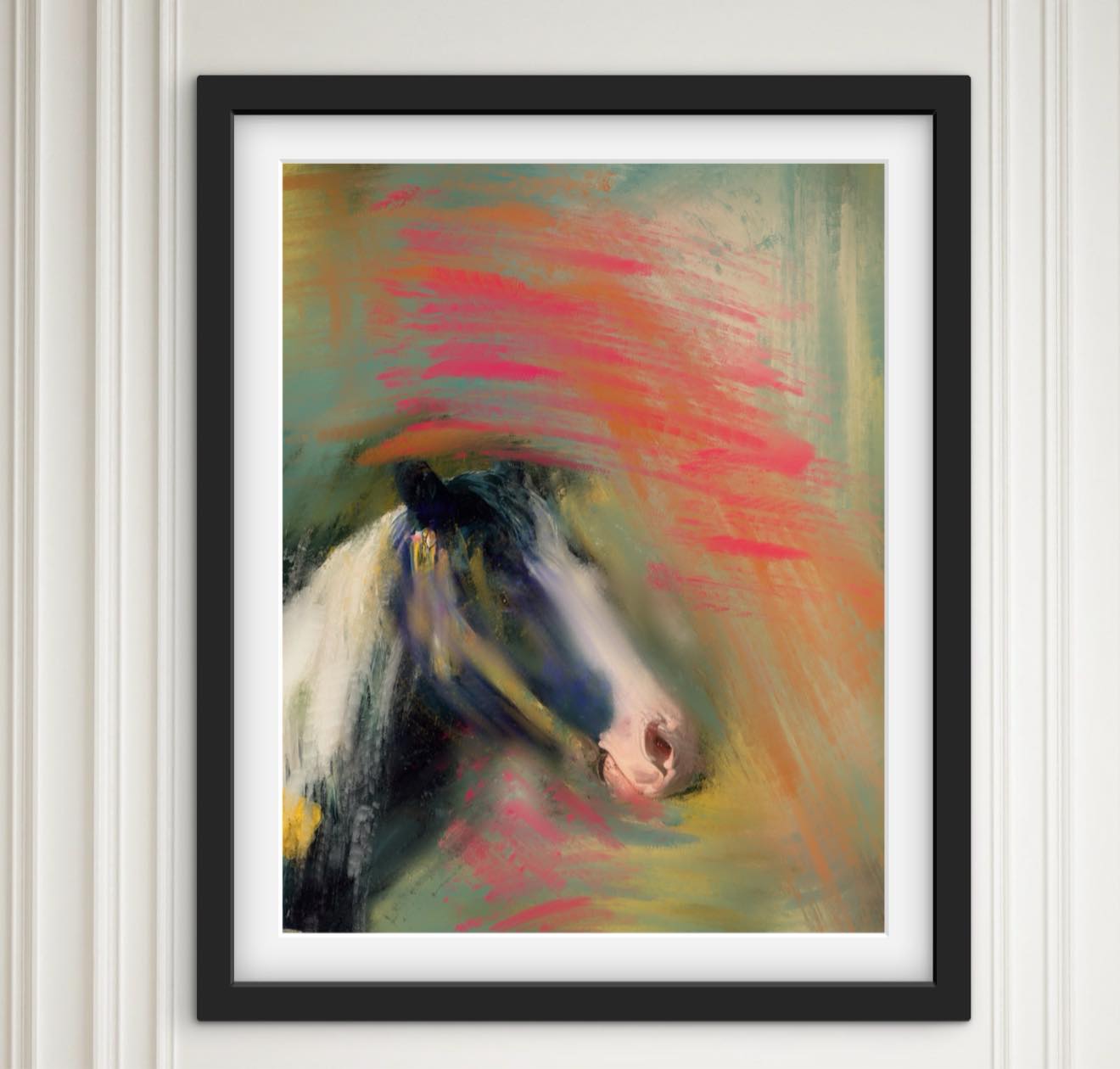 - Horse portrait interior reverie hot pink abstract — oil painting print by Noemi Fleming VivRo