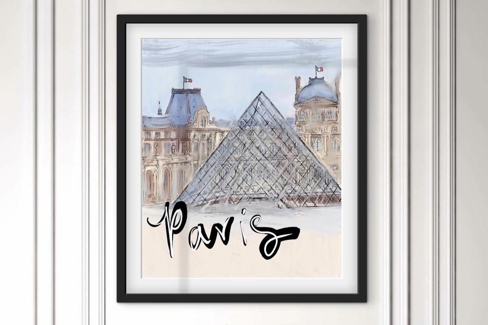 - Paris Louvre pyramid watercolour hand lettered illustration — art print by Noemi Fleming VivRo