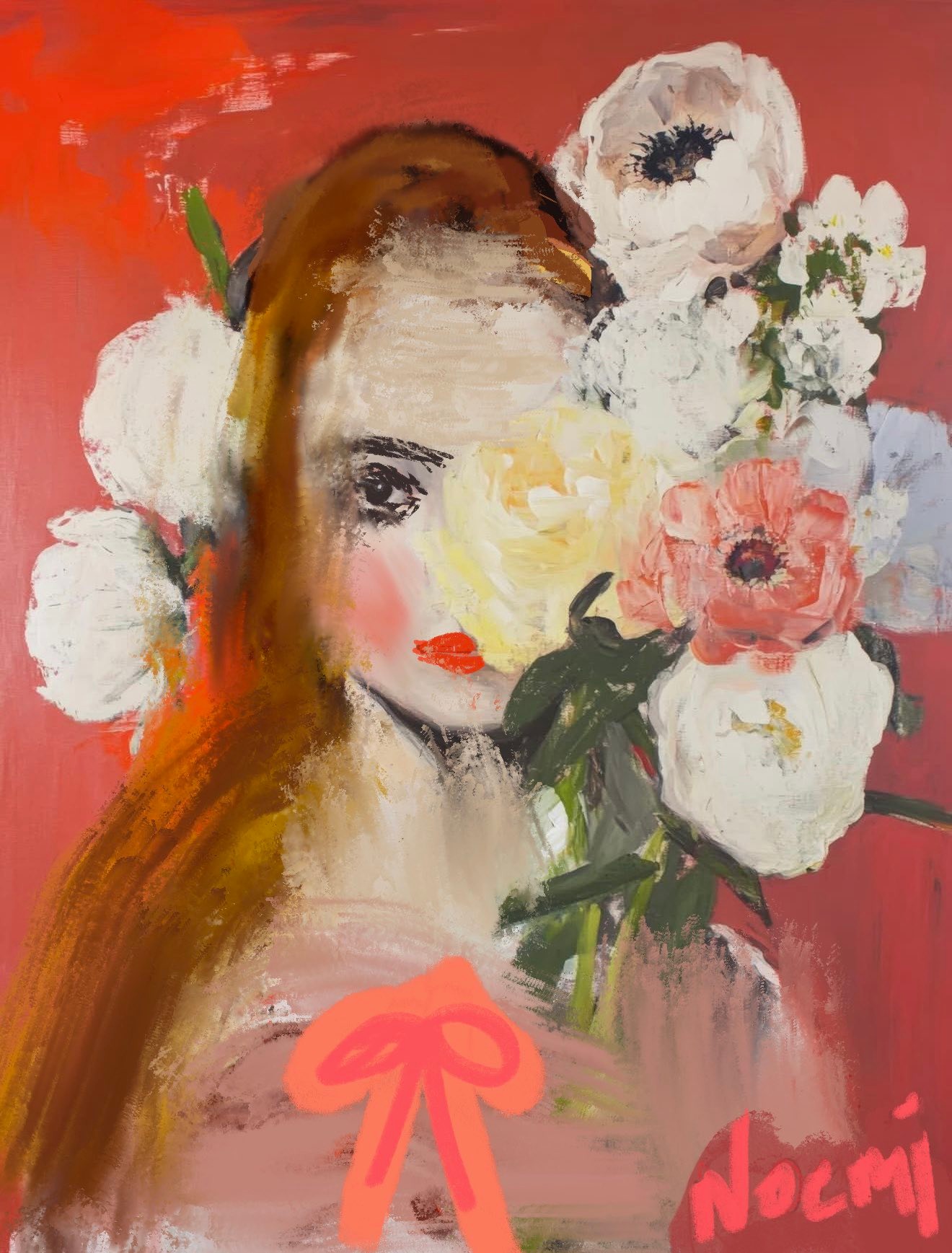 - Woman with red hair and flowers, vivro art by Noemi F print