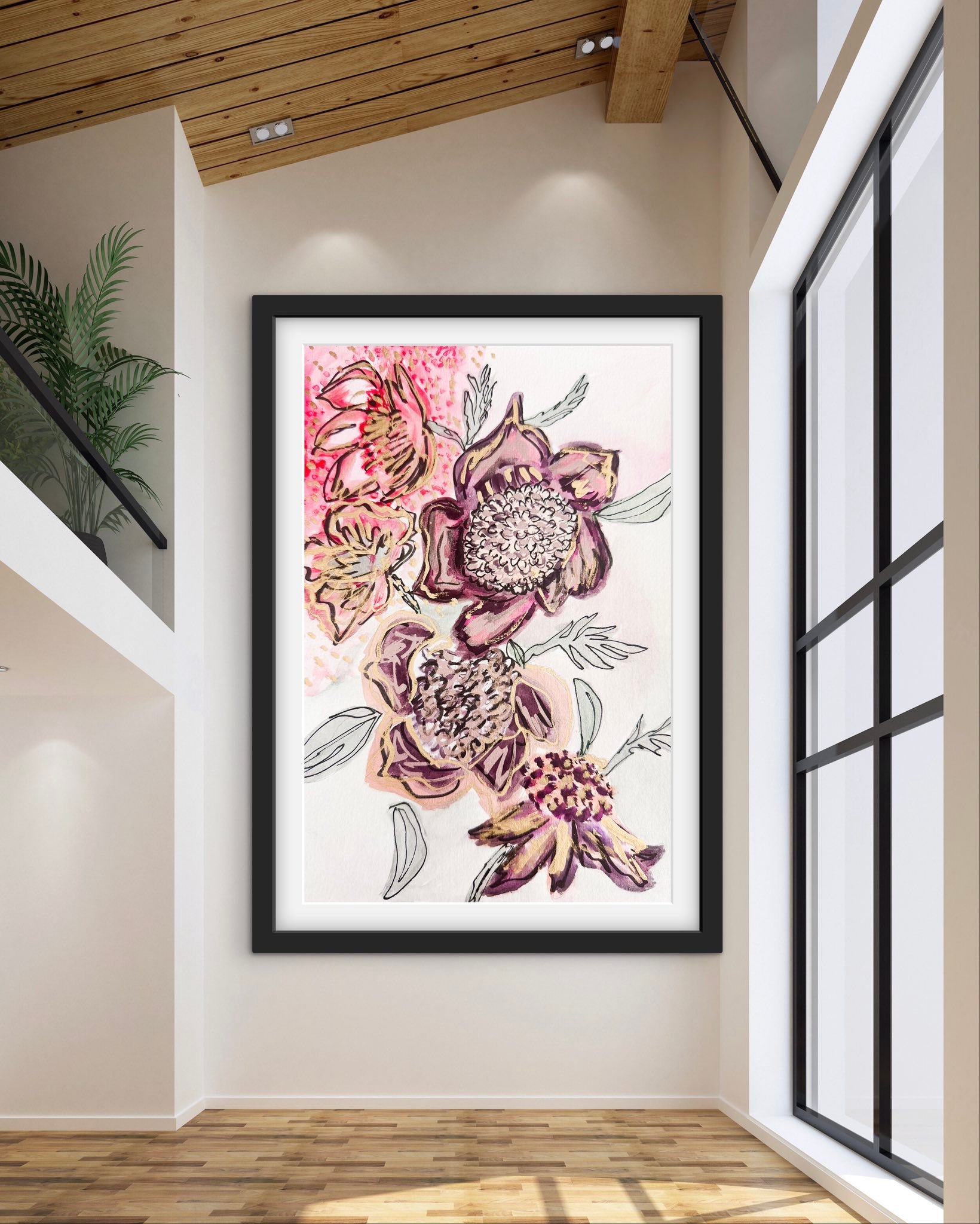 - Framed vivro art by Noemi F floral print abstract exploding